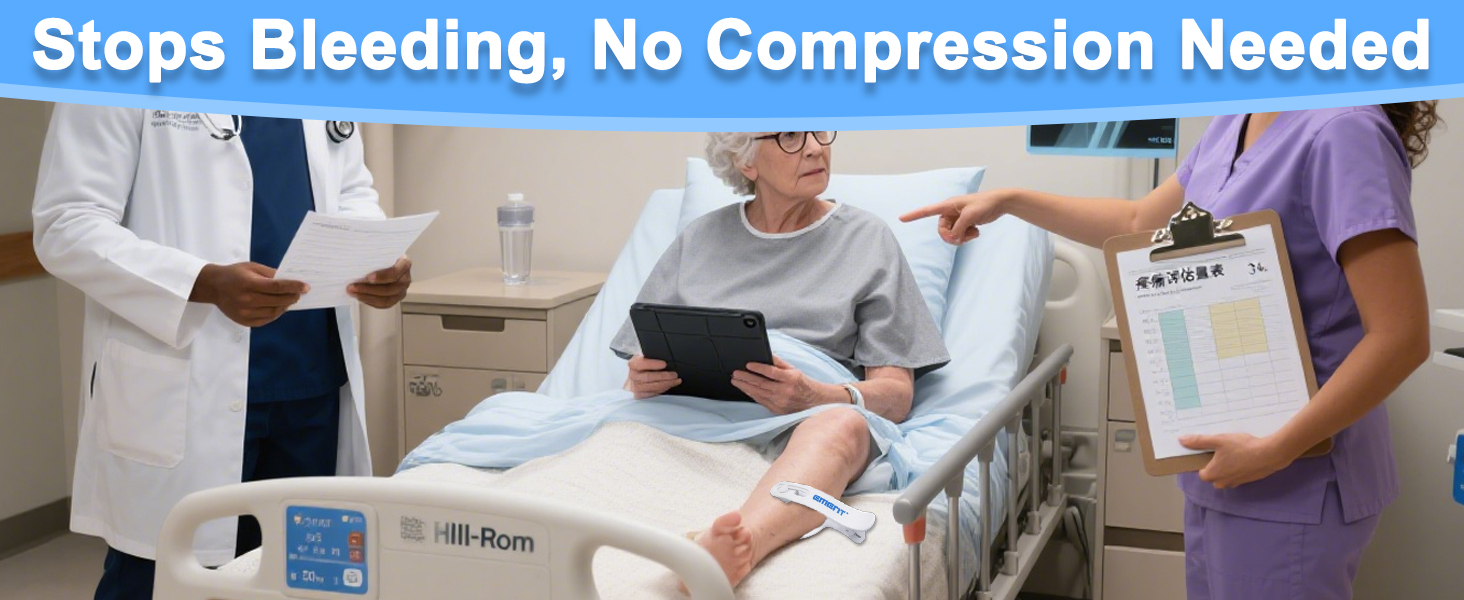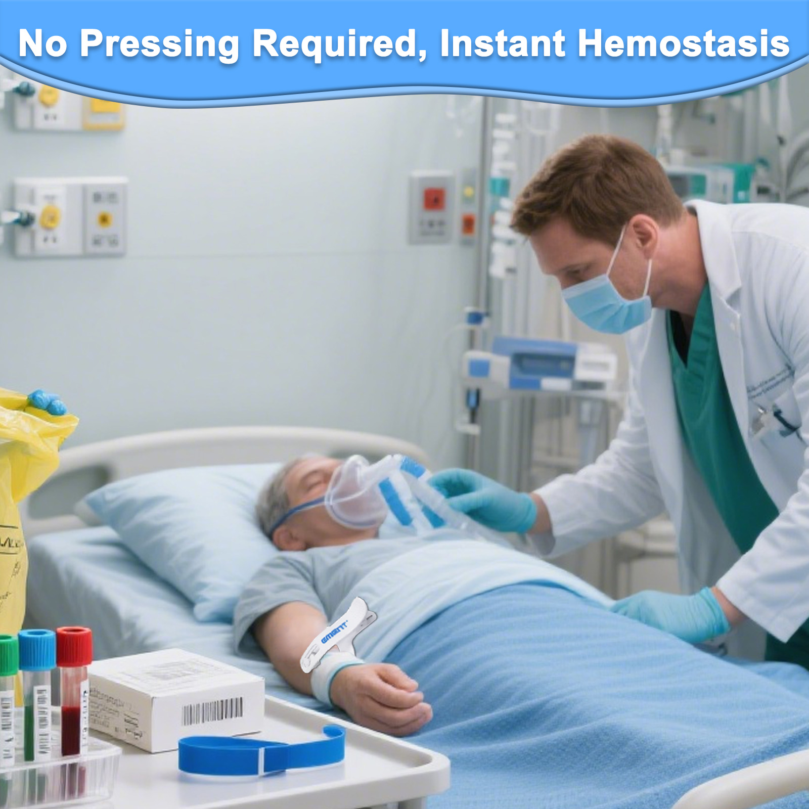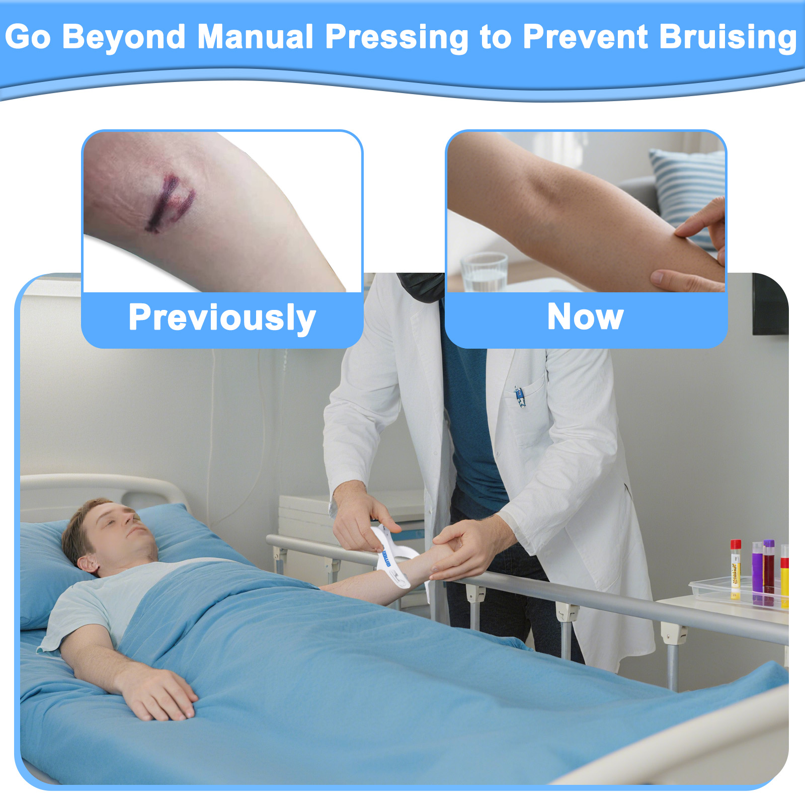 【Design Inspiration】EMM-PB Physical Hemostatic Clamp (Adult Version), designed to assist in hemostasis by coordinating with hemostatic gauze and adhesive bandages instead of manual finger pressure on wounds. 【Product Usage】Used for applying vertical physical pressure to the puncture site (needle eye) after intravenous infusion, indwelling needle removal, blood donation puncture, and PICC insertion to prevent subcutamneous bruising post-puncture.Suitable for unattended scenarios, addressing uneven manual pressure during compression 【Premium Materials and Design】Constructed from medical-grade PC material,ergonomically designed with a curved shape to fit snugly on body parts such as the arm and ankle.The hemostatic clamp's pressing head is made of transparent elastic material,adjustable position to align with the wound.