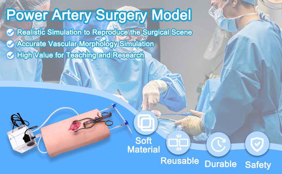 【Realistic Blood Flow Simulation for Enhanced Training】This Vascular Surgery Simulation Model mimics real human blood flow, providing a highly realistic environment for practicing complex surgical procedures. The model is designed to help users develop critical skills in handling vessel access and anastomosis. 【High-Quality Anatomy Model for Accurate Practice】Constructed to replicate true anatomy, this model offers a life-like experience, allowing trainees to gain hands-on practice with vascular anastomosis and surgical access techniques, making it ideal for medical education and training programs. 【Perfect for Bypass Surgery and Suturing Practice】With its blood vessel structure, this trainer supports practice for bypass surgery and suturing exercises. It’s an essential tool for building confidence and competence in critical vascular skills. 【Effective Surgical Skills Trainer for Medical Professionals】This model serves as a comprehensive trainer for surgical residents and professionals, enhancing their ability to perform vascular procedures accurately. It enables practitioners to develop proficiency in a controlled, safe setting before live procedures. 【Versatile Simulation Model for Various Training Environments】Suitable for hospitals, medical schools, and simulation labs, this vascular surgery simulation model is a valuable resource for teaching and assessing surgical skills. It provides a realistic anastomosis and blood vessel training experience essential for improving procedural expertise.