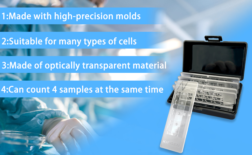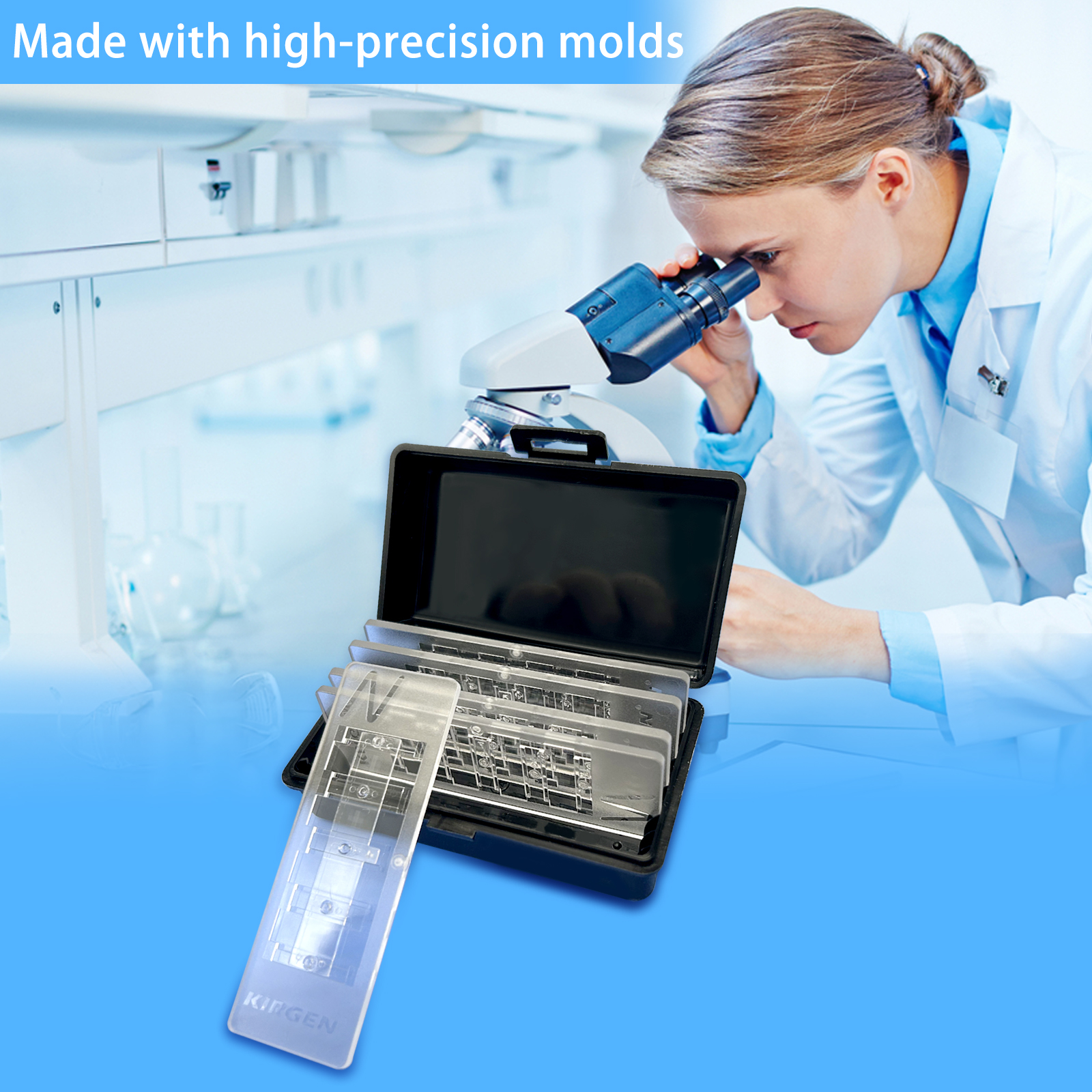 【Clear Observation with High-Quality Cover Glass】Our Counter comes with an integrated, ultra-thin cover glass, providing superior transparency for clear and detailed microscopic observation. This feature enhances visibility, making it easier to accurately count a variety of microorganisms. 【Efficient Multi-Sample Counting】Designed for convenience, this counting slide can handle up to 4 samples simultaneously, allowing for efficient analysis without the need for multiple slides. This multi-sample capability saves time and improves productivity in laboratory settings. 【Single-Use Design】The Counter is designed for single-use, eliminating the need for cleaning and minimizing the risk of cross-contamination between samples. This feature ensures a hygienic and accurate counting process, ideal for busy lab environments. 【Durable and User-Friendly for Laboratory Use】Made from high-quality, durable materials, this counting slide is easy to handle and designed for consistent performance. It’s perfect for laboratory professionals who need reliable tools for counting a range of microorganisms.