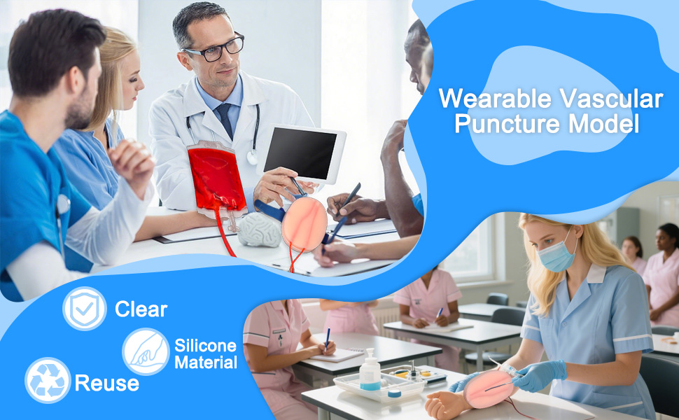 【Leakproof Pad for Classroom & Clinical Demos】 Educator-approved silicone pad maintains zero fluid seepage after repeated punctures—ideal for live venipuncture demonstrations in labs or lectures without messy cleanup. True-to-life skin resistance helps students master needle insertion depth control and vein anchoring techniques safely. 【Refillable Blood System for Unlimited Student Practice】 Quick-refill blood reservoir lets instructors reset practice stations in 30 seconds—simply inject simulated blood (included) via sealed port for high-volume nursing skills labs. Durable bag withstands 500+ refills, reducing consumable costs for medical school training programs. 【Complete Teaching Kit for Curriculum-Ready Training】 Out-of-box teaching solution includes wearable arm, pre-filled blood bag—perfect for phlebotomy OSCE stations or NCLEX skill drills. Standardized tools ensure every student practices identical techniques for fair competency assessments. 【Adjustable Wearable Arm for Group Learning】 Velcro straps fit all body sizes, enabling peer-to-peer practice in classroom settings—students can alternate as "patient" and "clinician" to build empathy and technique. Tactile "pop" feedback provides instant skill validation, helping instructors visually assess insertion accuracy during demonstrations. 【Hospital-Accurate Simulator for Clinical Confidence】 Replicates critical scenarios: 1. Dehydrated elder veins (low-turgor simulation) 2. Pediatric IV starts (delicate vein depth) 3. Obese patient access (subcutaneous fat layer) Prepares students for clinical rotations with ER/ICU-level challenges—proven to reduce skill anxiety by 70% in nursing cohort studies.