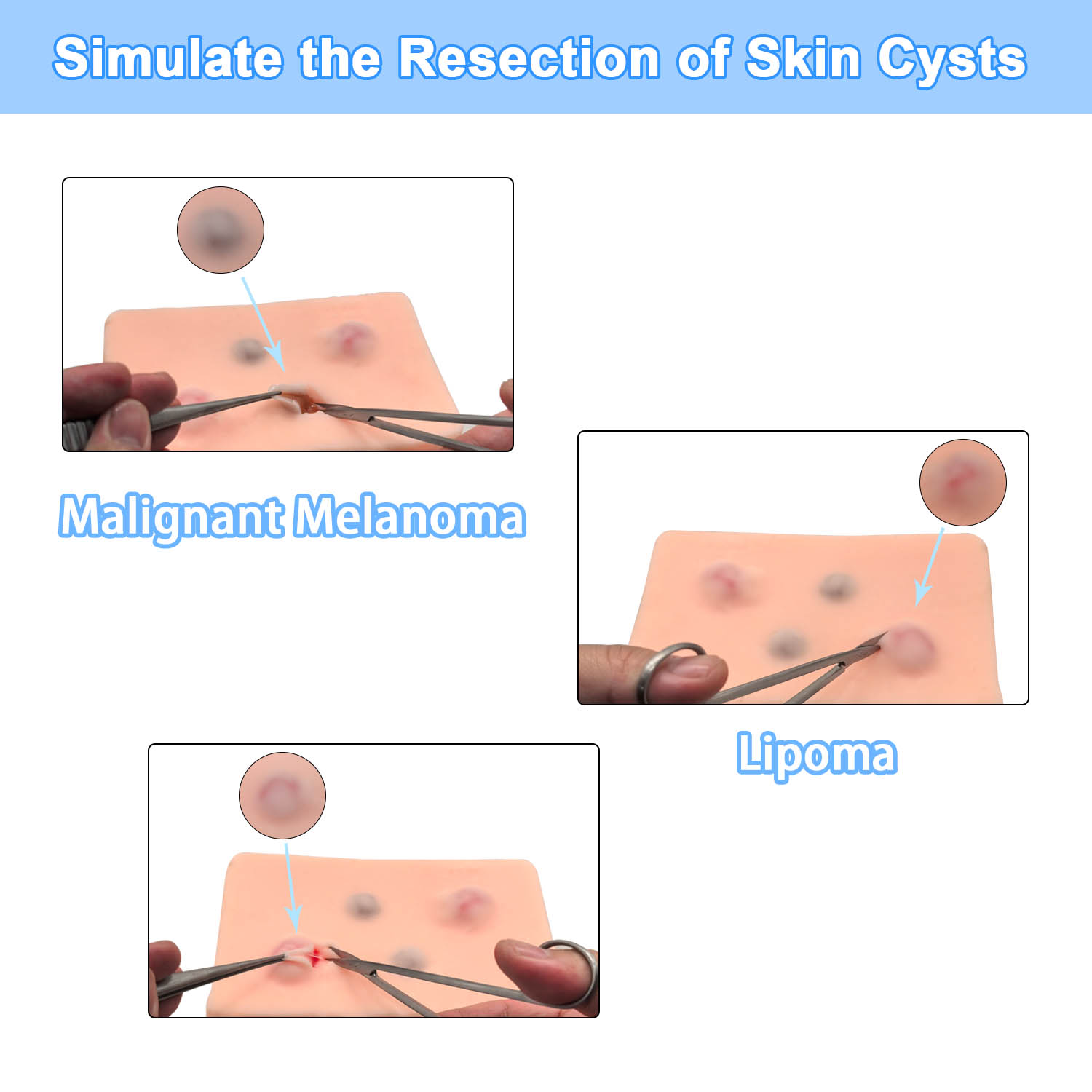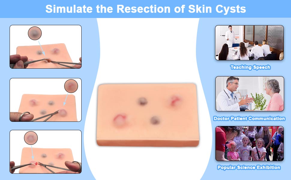 【Realistic Skin Cyst Excision Practice】This high-fidelity skin cyst excision training model simulates real-life cyst removal scenarios, providing an authentic experience for medical students, surgeons, and dermatologists to master surgical techniques. 【Single-Use Design for Hygiene and Convenience】Designed for one-time use, this model ensures a sterile and hygienic training environment, making it ideal for individual practice sessions or classroom demonstrations. 【Perfect for Surgical and Dermatology Training】Ideal for mastering cyst removal techniques, this model is a must-have for surgical training programs, dermatology residencies, and medical schools. It helps users improve precision and confidence in cyst excision procedures. 【Detailed Anatomical Design for Realistic Simulation】Featuring realistic skin layers and cyst structures, this model allows trainees to practice incision, drainage, and excision techniques in a controlled and lifelike environment. 【Essential Tool for Skill Development】Whether you're a beginner or an experienced practitioner, this single-use skin cyst excision model is an essential tool for enhancing surgical skills, preparing for real-life procedures, and advancing your medical career.