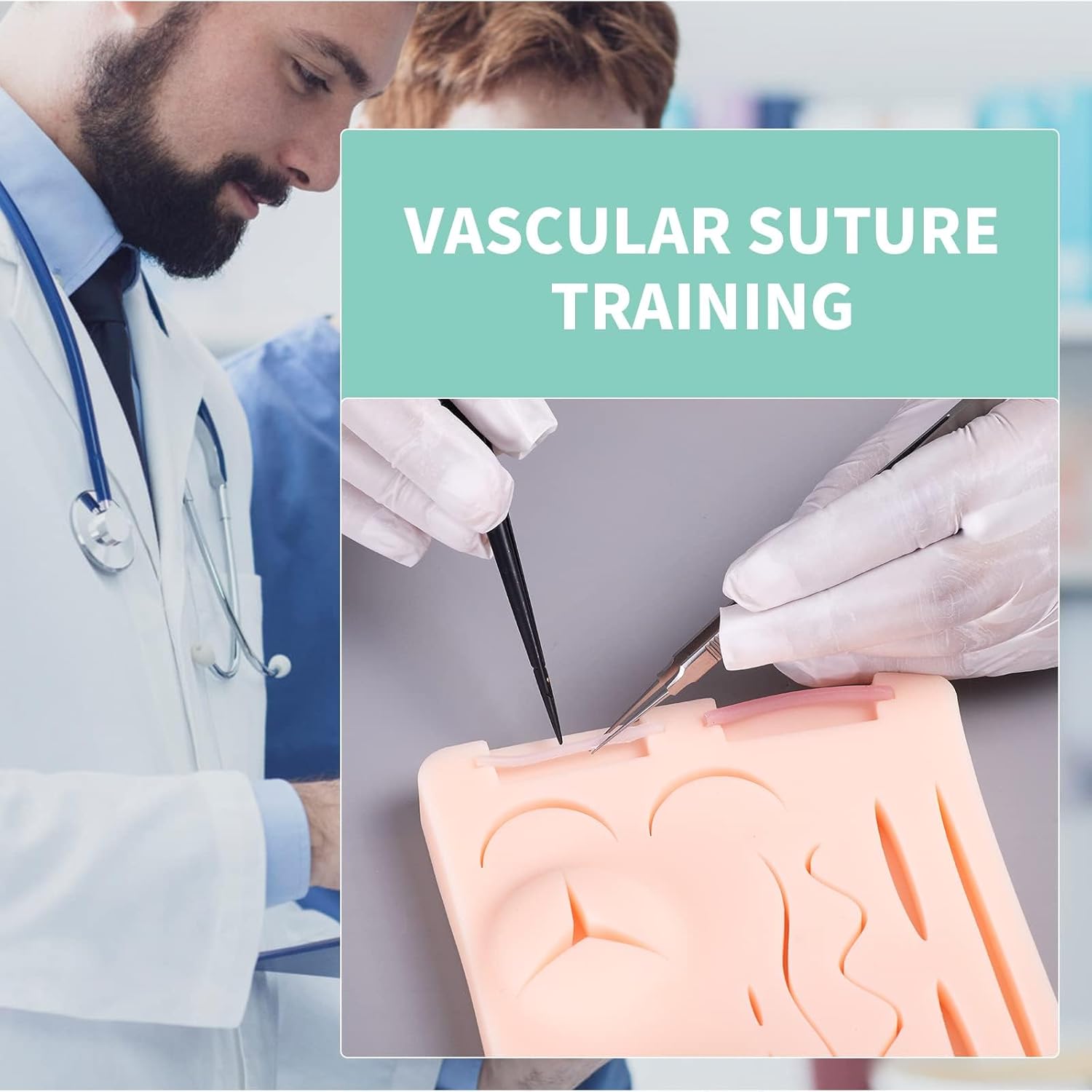 【Realistic Skin Pad】Our suture pad,real imitation of human skin, muscles, blood vessels, Put the operator in a real operating environment. 【More Comprehensive Suture Practice】The module has different ways of suture practice, there are two different diameter of the vascular anastomosis practice area.The module has two built-in 3.5mm outer diameter blood vessels and one 2.5mm blood vessel.Highly difficult curvedwound suture training,enhance curved surfacesuture technology 【3D Suture Practice Phantom】Skin suture practice,vascular suture practice, wound suture practice,for medical education training, cosmetic plastic surgery teaching training. 【Reusable Suture Pad】Our suture pad texture is close to real skin, odorless, soft, reusable and portable, making suture training easier and more enjoyable! 【Practicing Suturing】Can be used with a variety of instruments such as matching needle holders, tweezers, sutures, etc., which is suitable for learners of different levels.