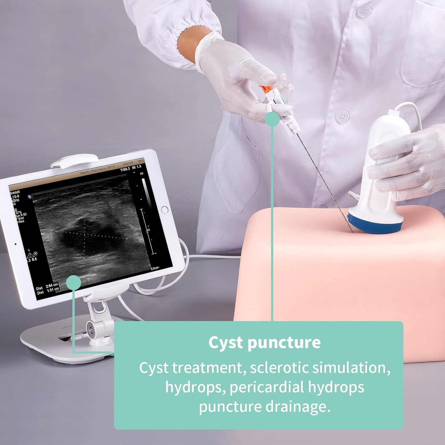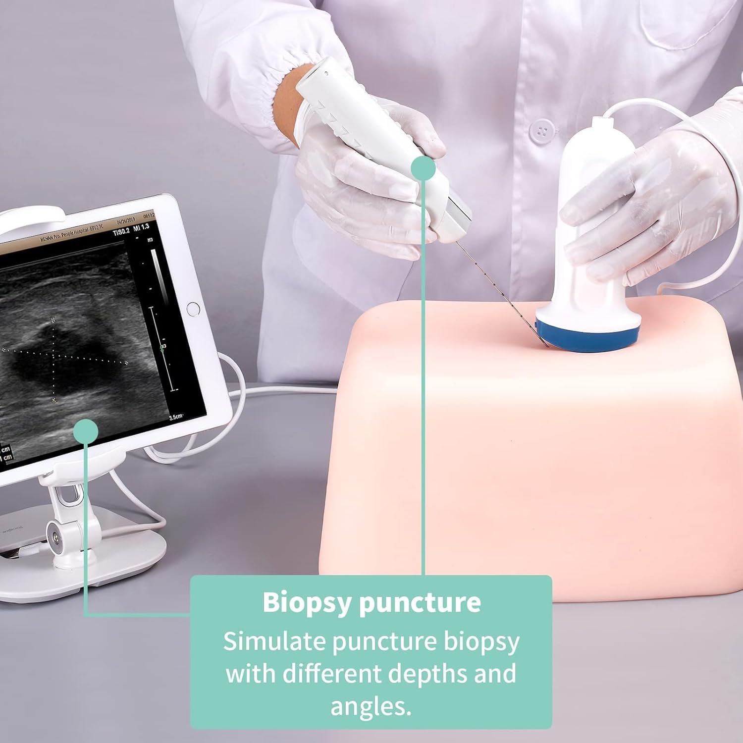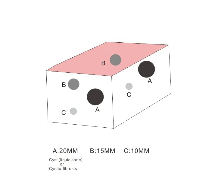【Use】Ultrasonic breast lesion scanning and exploration, ultrasound breast nodule sweeping practice, ultrasound-guided breast nodule puncture practice, ultrasound-guided breast biopsy puncture practice, ultrasound breast tissue rotary excision practice, for ultrasound medical education and training, avoiding the embarrassment of using a real mannequin 【Realistic Human Skin】 Is shaped to imitate a real breast, using polymer materials equivalent to human tissue, with ultrasonic imaging equivalent to human tissue density. Realistic feel, better practicing effect 【Clear Ultrasound Images】Contains 1cm diameter hypoechoic nodal tissue, 1.5cm hypoechoic malignant infiltrative lesion tissue, respectively located in the breast in different directions, different spatial distribution, suitable for breast lesion tissue puncture biopsy small lesion localization. 【Can be practiced repeatedly】Adopts polymer material equivalent to human tissue, feel real and no odor. The product is molded in one piece, please use with ultrasound coupling agent and probe, can be used with biopsy needle or puncture needle training, resistant to 1000 times puncture use, can automatically repair the needle channel after puncture. 【Customizable]】Ultrasound imaging is equivalent to the density of human tissue and supports customization of various lesion cases.