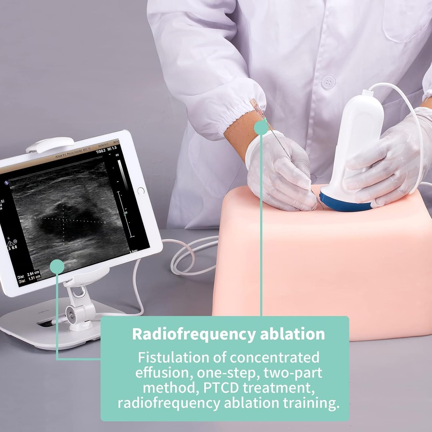 【Abdominal Ultrasound Puncture Training】 6 simulated lumps and 1 Effusionof varying sizes are present inside the tissue in the ultrasound-guided deep tissue mass puncture training model for practice, a unique tool for your practical training and exercises that test your associated skills. 【Excellent ultrasonic guidance performance】It adopts polymer materials equivalent to human tissue, and ultrasonic development is equilalent to human tissue density. Different gray-scale acoustic images are displayed in different tissues when. 【Biopsy puncture and Cyst puncture】 simulate puncture biopsy with different depaths and angles. Cyst treatment, sclerotic simulation, hydrops, pericardial hydrops puncture drainage 【Radiofrequency ablatio,Treatment of hepatic cyst and ovarian cyst】Fistulation of concentrated effusion, one-step, two-part method, PTCD treatment, radiofrequency ablation training. Liver cyst, ovarian cyst treatment, sclerotic simulation, fluid puncture and drainage. 【High Simulation】The size of kidney is th same as that of human body, which truly simulates the ultrasonic image and spatial position distribution of kidney. The cyst model with effusion can be customized.