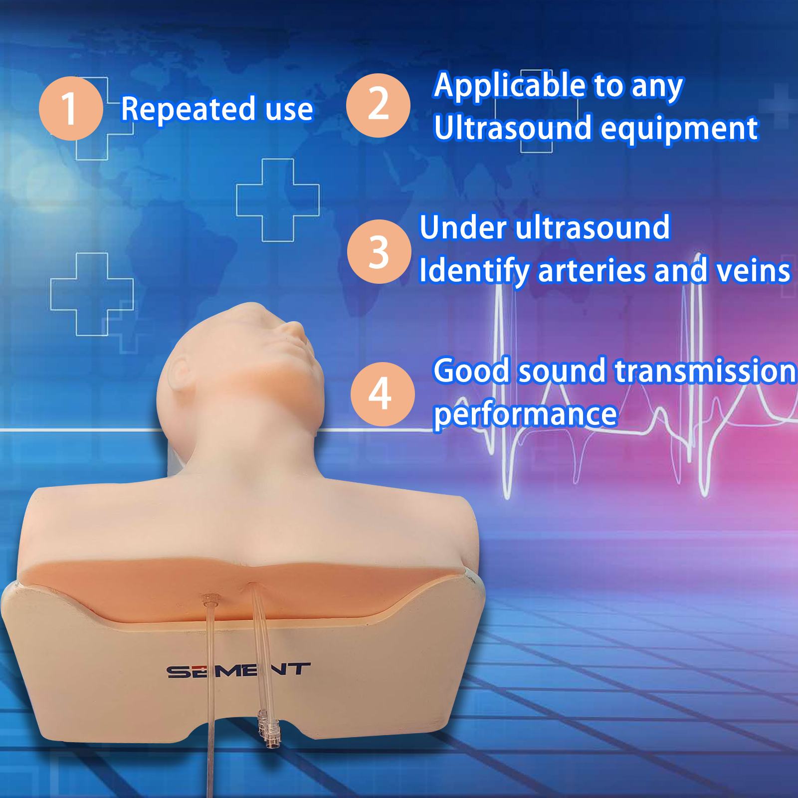 【Realistic Ultrasound-Compatible Design】 Features echogenic vessel structures that clearly display under ultrasound, mimicking real human anatomy for authentic CVC placement practice.High-fidelity tissue phantom with lifelike skin, subcutaneous layers, and compressible veins. 【Comprehensive Central Line Training】 Perfect for practicing IJ/Subclavian/Femoral vein access with ultrasound guidance.Includes simulated guidewires, catheters, and syringes (optional) for complete procedural training. 【Risk-Free Medical Education】 Eliminates risks of practicing on live patients—ideal for medical students, residents, and nursing staff.Reusable & durable material withstands 1000+ needle punctures without degradation. 【Time-Efficient Skill Mastery】 Portable design allows for individual or group training in classrooms, labs, or clinics.Includes step-by-step guide with common ultrasound views and troubleshooting tips. 【Compliant Quality】 Manufactured with non-toxic, latex-free materials meeting medical safety standards.Compatible with all major ultrasound gel types and disinfectants for easy maintenance.