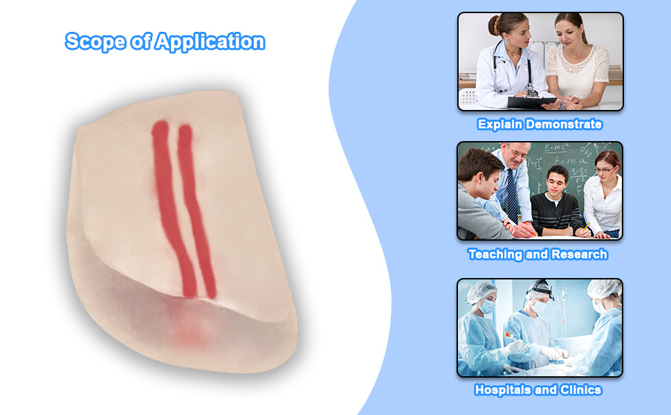 【Realistic Skin Pad】Our suture pad,real imitation of human skin, muscles, blood vessels, Put the operator in a real operating environment. 【More Comprehensive Suture Practice】The module has different ways of suture practice, there are two different diameter of the vascular anastomosis practice area.The module has two built-in 3.5mm outer diameter blood vessels and one 2.5mm blood vessel.Highly difficult curvedwound suture training,enhance curved surfacesuture technology 【3D Suture Practice Phantom】Skin suture practice,vascular suture practice, wound suture practice,for medical education training, cosmetic plastic surgery teaching training. 【Reusable Suture Pad】Our suture pad texture is close to real skin, odorless, soft, reusable and portable, making suture training easier and more enjoyable! 【Practicing Suturing】Can be used with a variety of instruments such as matching needle holders, tweezers, sutures, etc., which is suitable for learners of different levels.