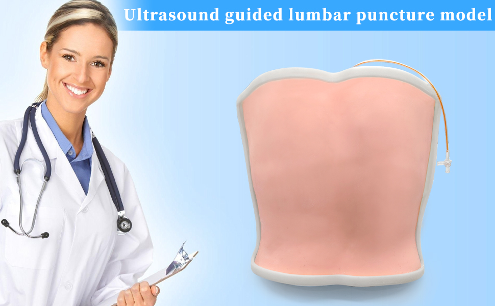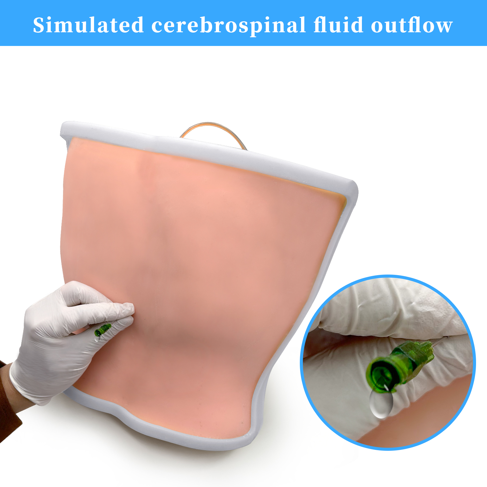 【Multiple Positions Simulation Training】The model supports both side-lying and standing positions for ultrasound examination. The side-lying position can realistically simulate the lumbar puncture operation, providing a more realistic training experience for the trainees. 【Precise Anatomical Structure】The complete 1~5 vertebrae, pearl retina and other precise tissue structure with obvious markings on the body surface can truly touch the anatomical position of each level, which helps the trainee to understand and master the lumbar puncture technique. 【A Variety ofClinical Operation Simulation】The model is suitable for a variety of lumbar spine related operation training, including lumbar anesthesia, lumbar puncture, caudal nerve block, lumbar sympathetic nerve block, etc., to comprehensively improve the trainee's operation skills. 【Realistic Puncture Experience】Simulating the increase in resistance of the ligamentum flavum, the breakthrough with an obvious sense of falling, negative pressure after entering the epidural cavity, the needle continues to puncture the dura mater and the bead omentum with a second sense of falling, simulating the outflow of cerebrospinal fluid, with a very high degree of simulation. 【Complete Simulation of Clinical Operation】The model accurately reproduces the clinical process of lumbar puncture and simulates the outflow of cerebrospinal fluid, which helps the trainee to familiarize with and master the whole process from puncture to the outflow of cerebrospinal fluid.