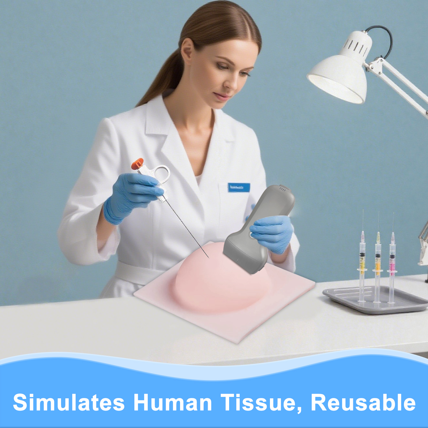 【Four Realistic Lesions for Comprehensive Training】 This model features four distinct simulated abnormalities including cysts, tumors, and lumps of varying sizes and characteristics. These realistic lesions provide diverse practice scenarios for mastering detection and biopsy techniques under ultrasound guidance. 【Complete Breast Biopsy Procedure Training】 Perfect for practicing breast biopsy practice, breast nodule or lesion examination, rotation biopsy of benign lesions. The model supports comprehensive training in lesion targeting, needle insertion, and tissue sampling techniques essential for clinical practice. 【 Clear Ultrasound Imaging】 Crafted from specialized polymer material that closely matches human tissue density, this model delivers exceptionally clear and realistic ultrasound images. The material ensures accurate needle visualization and authentic imaging feedback during all training exercises. 【Self-Healing & Reusable Design】 The advanced polymer construction features self-healing properties that automatically seal after needle punctures, allowing for hundreds of repeated biopsy practices. This durable, flexible model maintains its structural integrity through extensive training sessions. 【Essential Tool for Medical Education】 Ideal for medical students, radiology residents, and clinical instructors in hospital training programs, medical schools, and skills laboratories. This model serves as a vital training resource for both initial skill development and ongoing proficiency maintenance in breast intervention procedures.