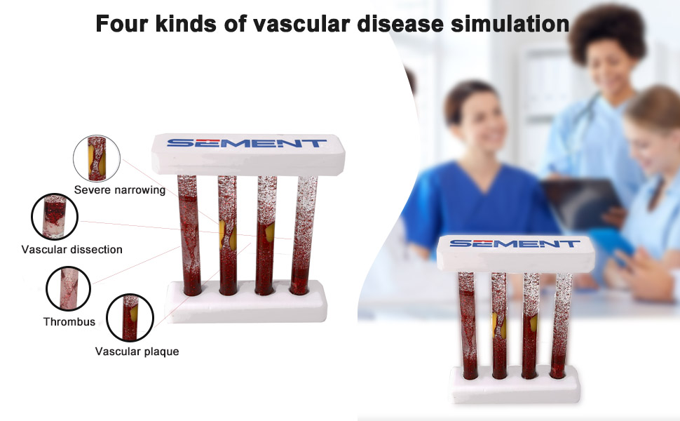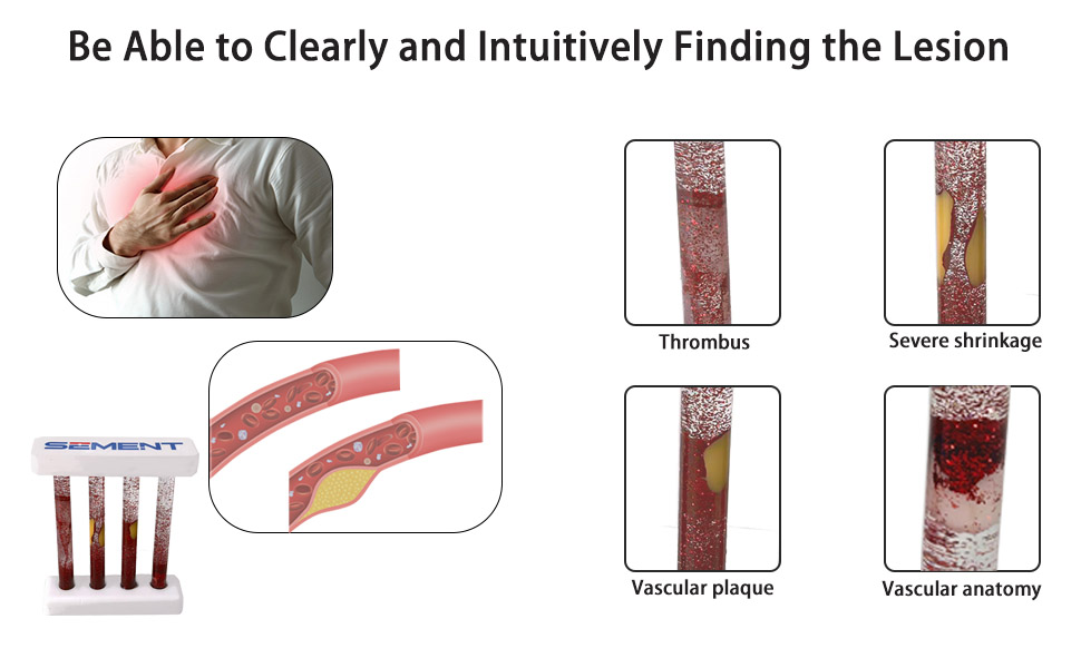 【Realistic Vascular Pathology Model】 This detailed model showcases four common vascular lesions—thrombosis, dissection, plaque, and stenosis—providing a clear and accurate representation of blood flow in pathological vessels for enhanced understanding and training. 【Interactive Blood Flow Simulation 】 By inverting the model, users can vividly observe how blood flows through each type of vascular lesion, making it an excellent tool for demonstrating the effects of vascular diseases on circulation. 【Ideal for Medical Training and Education】Designed for medical students, surgeons, and healthcare professionals, this model is perfect for teaching, learning, and practicing the diagnosis and treatment of vascular pathologies. 【Durable and Easy to Use】Made from high-quality materials, this vascular pathology model is built to withstand frequent use in classrooms, labs, or clinical settings, ensuring long-lasting educational value. 【Comprehensive Learning Tool】Whether for individual study or group demonstrations, this model offers an engaging and hands-on way to explore vascular diseases, making it an essential resource for medical training programs and surgical education.